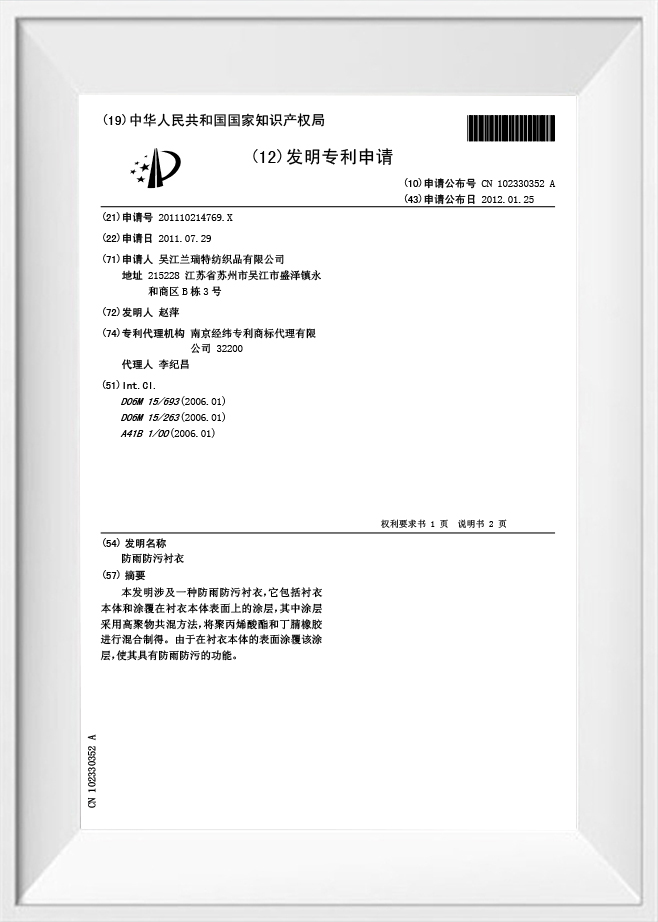براءة اختراع لقميص مقاوم للماء ومضاد للرذاذ