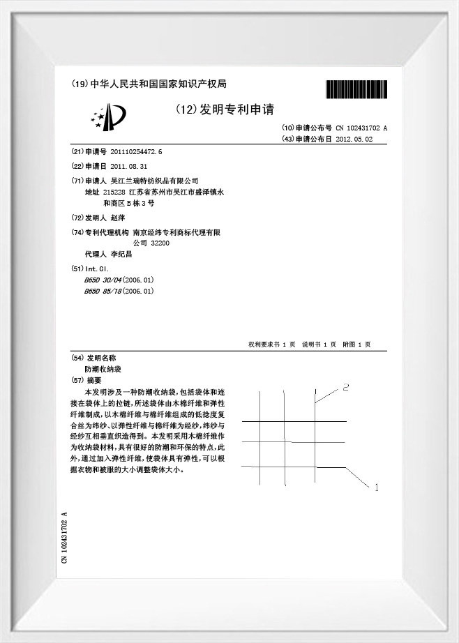 براءة اختراع لحقيبة تخزين مقاومة للرطوبة